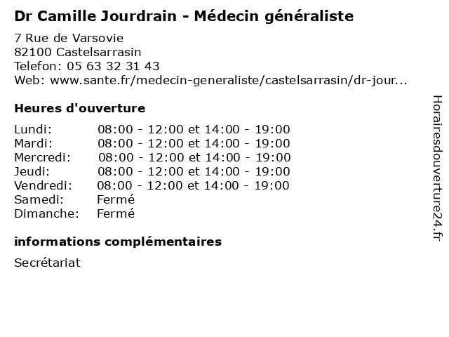 | Mercredi | 08:00-12:00 et 14:00-19:00 |