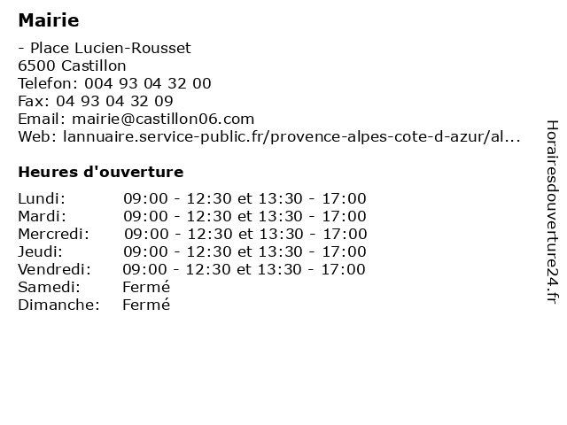 | Mardi | 09:00-12:30 et 13:30-17:00 |