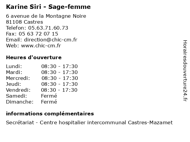 | Mercredi | 08:30-17:30 |