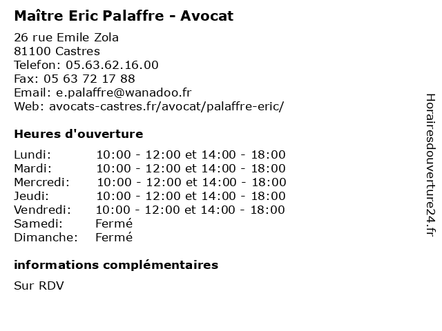 | Lundi | 10:00-12:00 et 14:00-18:00 |