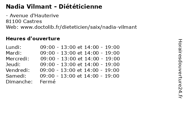 | Lundi | 09:00-13:00 et 14:00-19:00 |