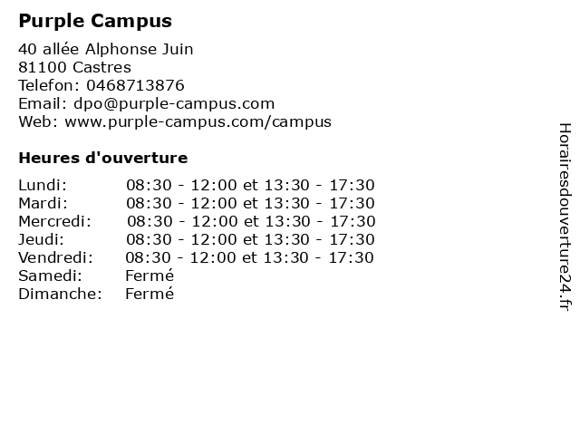 | Lundi | 08:30-12:00 et 13:30-17:30 |