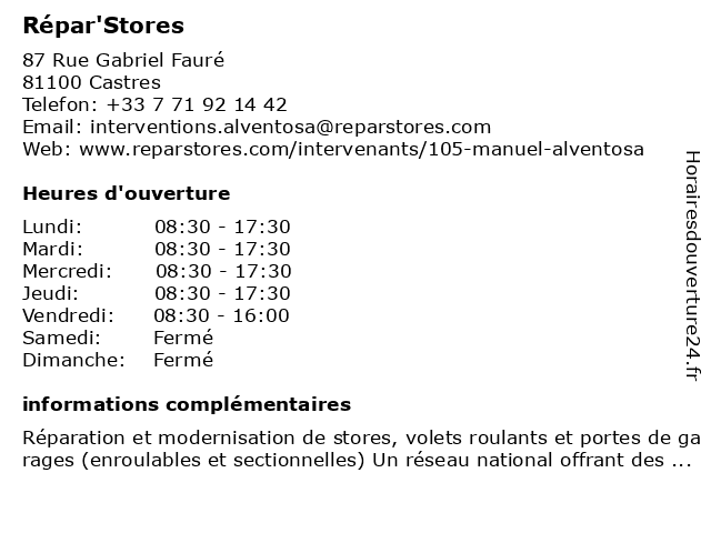 2 Yiango Store (Distance: 1,67 km) 22 Rue Merigonde, 81100 Castres bien être, coatching, conseils, espace, nutrition, store, stores, yiango 3 Clomen (Distance: 3,66 km) 2 Rue Des Metiers, 81100 Castres clomen, fabricant de portes, fabricant de portes de garage, fournisseur de clôtures, magasin de mobilier d'extérieur, magasin de stores 6 |