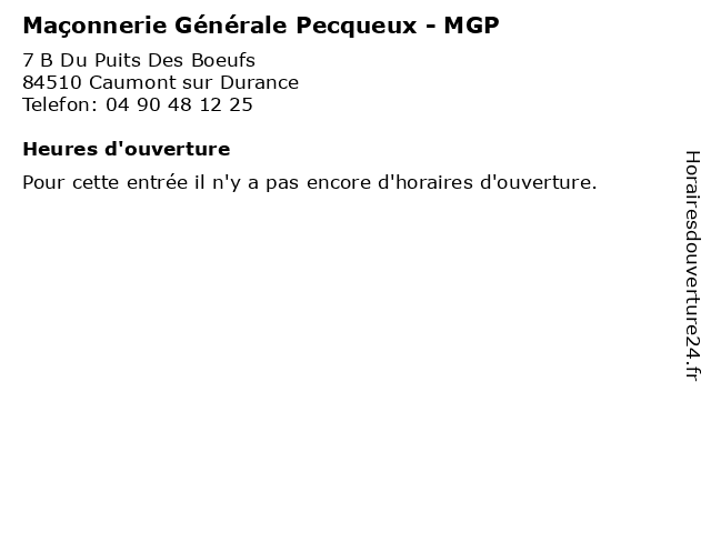 | Appeler Maçonnerie Générale Pecqueux - MGP | |