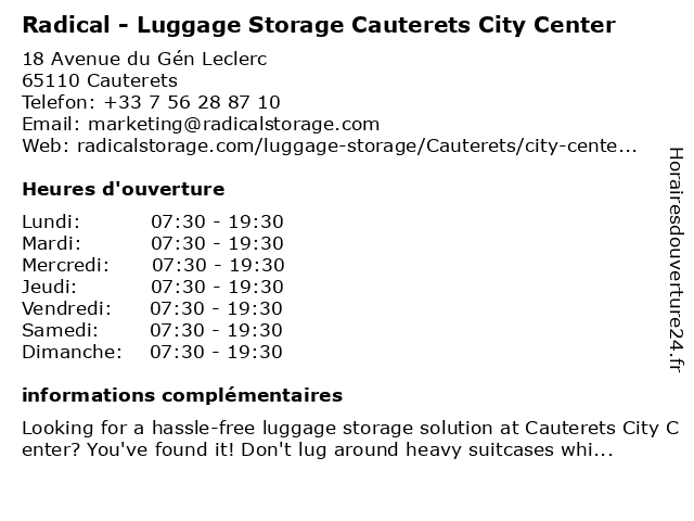 Termes de recherche pour Radical - Luggage Storage Cauterets City Center:center, city, radical, cauterets, luggage, storage, luggage storage, luggage storage near me |