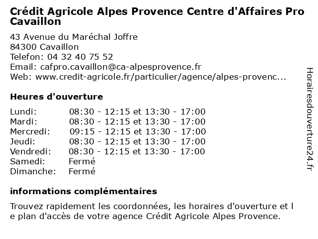 Termes de recherche pour Crédit Agricole Alpes Provence Centre d'Affaires Pro Cavaillon:provence, cavaillon, centre, agricole, crédit, alpes, pro, d'affaires |