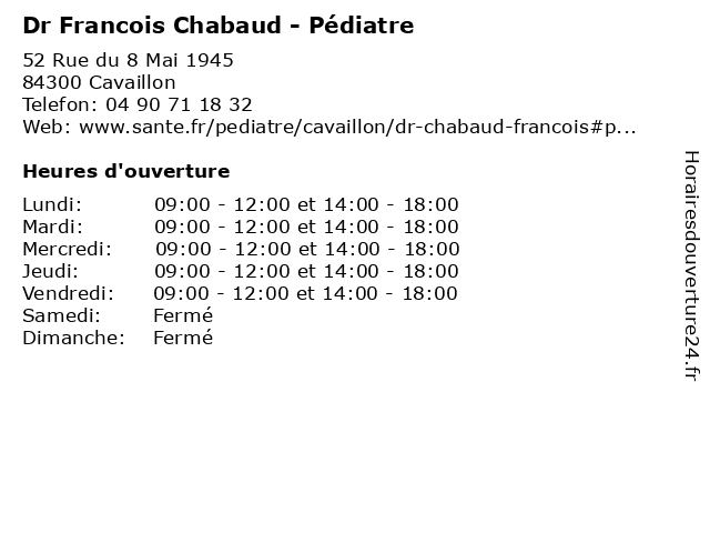 | Mercredi | 09:00-12:00 et 14:00-18:00 |