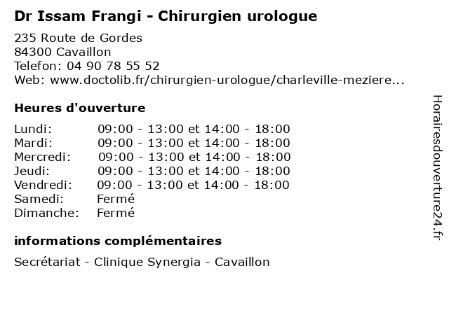 | Lundi | 09:00-13:00 et 14:00-18:00 |