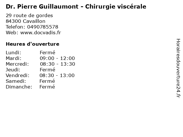 1 Emballages Guillaumont (Distance: 0,86 km) 222 Ancien Chemin de Gordes, 84300 Cavaillon emballages, guillaumont 2 CH Salon - Unité de Chirurgie Viscérale (Distance: 23,54 km) 207 Avenue Julien Fabre, 13300 Salon-de-Provence bureau, ch, chirurgie, consultation, de, dr, maladie, med, médecin, médecine, pratique, salon, thérapie, traitement, unité, viscérale 3 CH Pertuis - Chirurgie Viscérale adultes (Distance: 39,76 km) 58 Rue de Croze, 84123 Pertuis adultes, bureau, ch, chirurgie, consultation, dr, maladie, med, médecin, médecine, pertuis, pratique, thérapie, traitement, viscérale 4 Dr Eric Blancato - Chirurgien viscéral et digestif (Distance: 46,64 km) - Avenue des Tamaris, 13616 Aix-en-Provence blancato, chirurgie, chirurgien, de, digestif, digestive, disgestive, dr, eric, et, foie, glandes, l’obésité, viscerale, viscéral, viscérale 5 Dr Rémi Bon Mardion - Chirurgien viscéral et digestif (Distance: 46,64 km) - Avenue des Tamaris, 13616 Aix-en-Provence bon, chirurgie, chirurgien, de, digestif, digestive, disgestive, dr, et, foie, glandes, l’obésité, mardion, rémi, viscerale, viscéral, viscérale 6 DrJulien Bonnet - Chirurgien viscéral et digestif (Distance: 46,64 km) - Avenue des Tamaris, 13616 Aix-en-Provence bonnet, chirurgie, chirurgien, de, digestif, digestive, disgestive, drjulien, et, foie, glandes, l’obésité, viscerale, viscéral, viscérale |