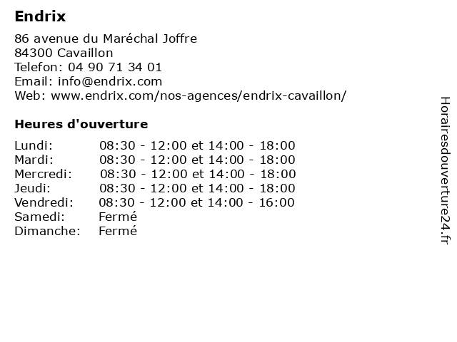 | Lundi | 08:30-12:00 et 14:00-18:00 |