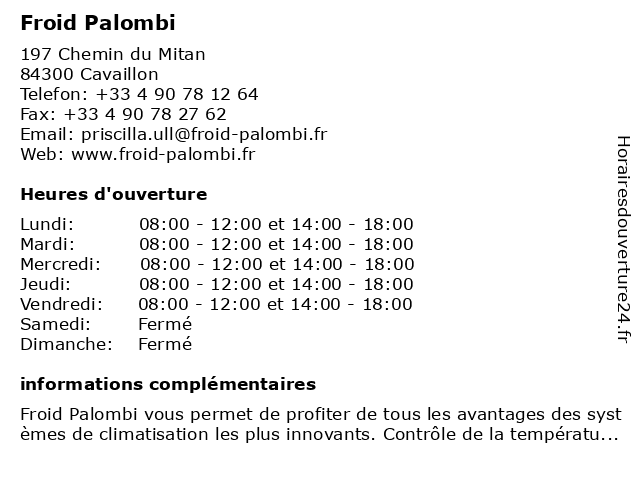 2 Le Froid Provençal (Distance: 16,01 km) 638 Avenue de la Libération, 13160 Châteaurenard climatisation, débourbage, froid, le, maîtrise de fermentation, provençal, stabilisation tartrique, thermorégulation 3 Froid Routier Service (Distance: 20,67 km) 135 Avenue Pierre Semard, 84000 Avignon carrier, frigorification, froid, routier, service, transicold, transport 6 Le Froid Industriel (Distance: 40,05 km) 8 Rue Domitienne, 30300 Jonquières-Saint-Vincent froid, industriel, le |