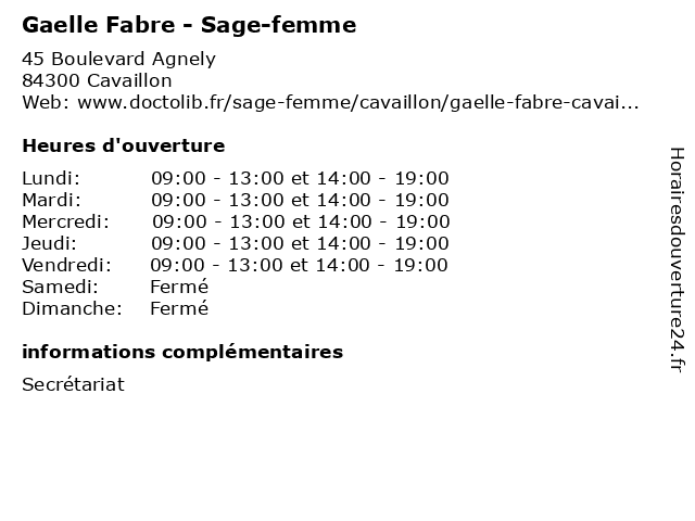 | Mercredi | 09:00-13:00 et 14:00-19:00 |