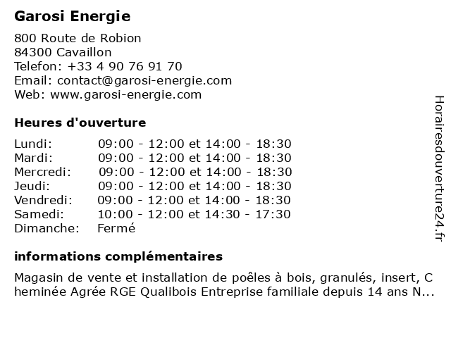 | Lundi | 09:00-12:00 et 14:00-18:30 |