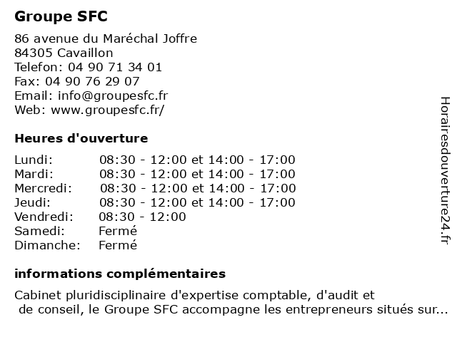 | Lundi | 08:30-12:00 et 14:00-17:00 |