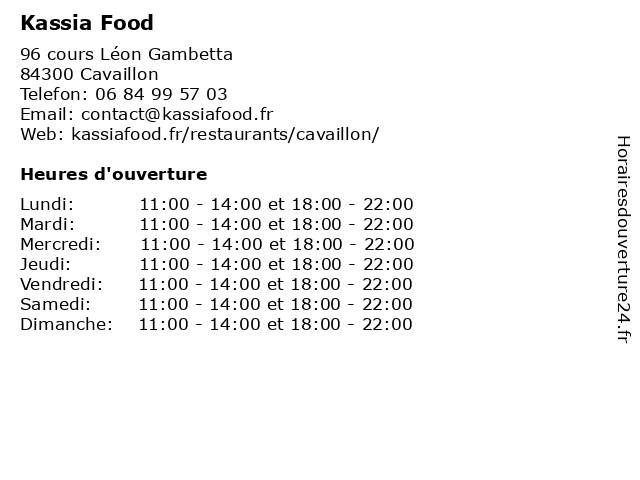 Lundi | 11:00-14:00 et 18:00-22:00 |