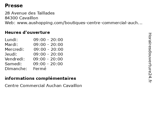 1 Maison de La Presse (Distance: 0,80 km) 13 Avenue Gabriel Peri, 84300 Cavaillon cadeaux, carterie, confiserie-boissons-food, de, française des jeux, la, librairie, maison, papeterie, pmu, presse, tabac 2 Maison de La Presse (Distance: 5,17 km) - De La Victoire, 13660 Orgon cadeaux, carterie, confiserie-boissons-food, de, française des jeux, la, librairie, maison, papeterie, pmu, presse, tabac 3 Tabac / Presse (Distance: 5,27 km) 167 Avenue Aristide Briand, 84440 Robion journaux, presse, robion, tabac 4 Mag Presse (Distance: 12,10 km) - Route de Carpentras, 84800 L'Isle Sur la Sorgue mag, magazine, presse, services 5 Tabac-presse (Distance: 15,88 km) 1741 route de Marseille, 84140 Montfavet beauté, boutiques, déco, enfants, mode, mode femme, presse, shopping, tabac 6 Tabac-presse (Distance: 15,88 km) 1741 route de Marseille, 84140 Montfavet beauté, boutiques, déco, enfants, mode, mode femme, presse, shopping, tabac |