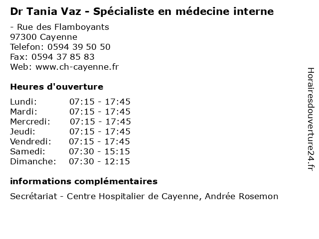 1 Dr Myriam El Guedj - Spécialiste en médecine interne (Distance: 0,00 km) - Rue des Flamboyants, 97300 Cayenne consultation, docteur, dr, el, en, guedj, interne, med, myriam, médecin, médecine, spécialiste, traitement 2 Dr Loic Epelboin - Spécialiste en médecine interne (Distance: 0,00 km) - Rue des Flamboyants, 97300 Cayenne consultation, docteur, dr, en, epelboin, interne, loic, med, médecin, médecine, spécialiste, traitement 3 Dr Emilie Mosnier - Spécialiste en médecine interne (Distance: 0,00 km) - Rue des Flamboyants, 97300 Cayenne consultation, docteur, dr, emilie, en, interne, med, mosnier, médecin, médecine, spécialiste, traitement 4 Dr. Marie-Rose Kitenge - Médecine générale (Distance: 1,57 km) 1361 Route de Baduel, 97300 Cayenne consultation, docteur, dr., générale, kitenge, marie, médecine, rose, santé 5 Cabinet médical - Médecine générale (secrétariat ) (Distance: 1,92 km) 109 Rue Christophe Colombe, 97300 Cayenne cabinet, consultation, docteur, générale, médecine, médical, santé, secrétariat 6 Chantal Prevot Mandataire en Droit des Successions et Immobilier (Distance: 2,05 km) 26 Boulevard Nelson Madiba Mandela, 97300 Cayenne chantal, des, droit, en, et, immobilier, mandataire, prevot, successions |