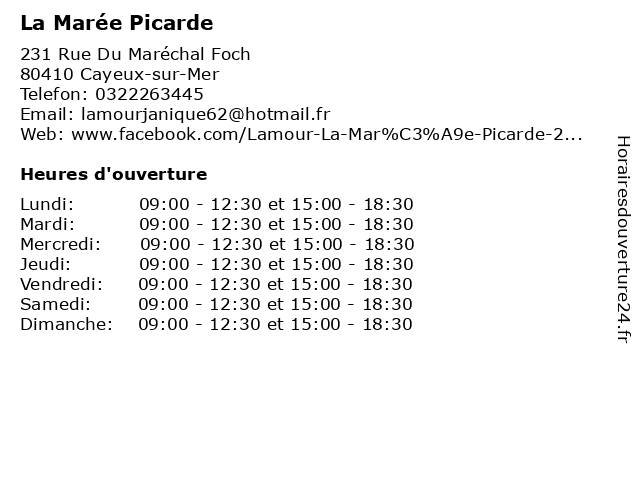 | Mardi | 09:00-12:30 et 15:00-18:30 |