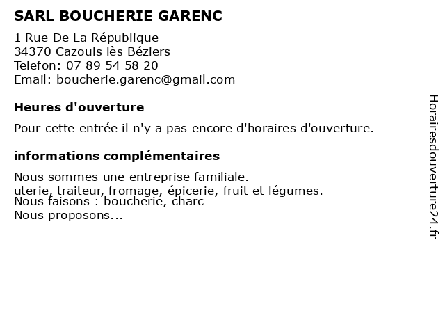 Termes de recherche pour SARL BOUCHERIE GARENC:sarl, boucherie, garenc |