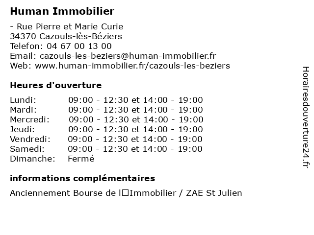 | Lundi | 09:00-12:30 et 14:00-19:00 |