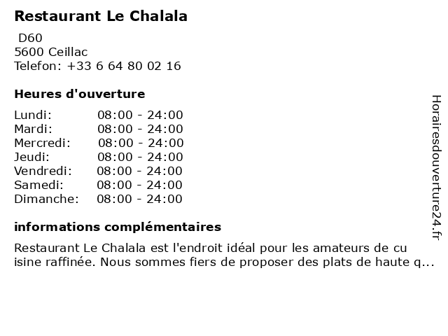 Restaurant Le Chalala est l'endroit idéal pour les amateurs de cuisine raffinée. Nous sommes fiers de proposer des plats de haute qualité préparés avec des ingrédients frais et locaux, qui co...