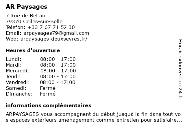 3 AV Ecosphère Paysages 79 (Distance: 21,30 km) 18 Rue des Piverts, 79000 Niort 79, av, ecosphère, paysages 4 Paysages et Jardins (Distance: 23,24 km) 21 Rue de l'Île, 79270 Frontenay-Rohan-Rohan et, jardins, paysages 6 Verts Paysages (Distance: 39,59 km) 1 Lieu dit les Vignes, 79310 Saint-Pardoux-Soutiers paysages, verts |