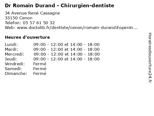 | Lundi | 09:00-12:00 et 14:00-18:00 |