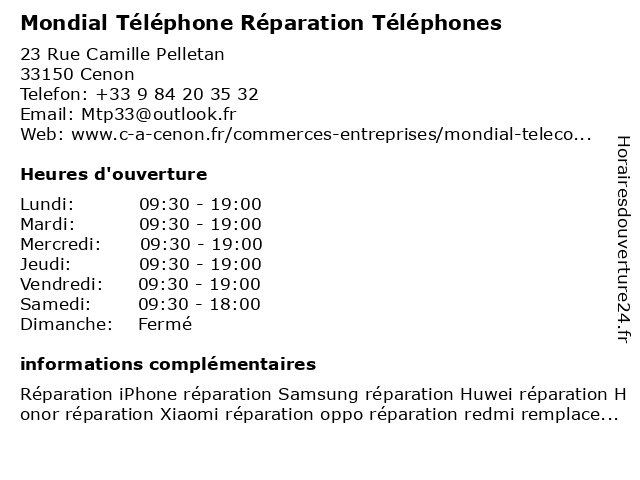 | Lundi | 09:30-19:00 |