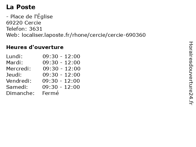 2 La Poste (Distance: 3,11 km) 12 Impasse de l'abattoir, 69430 Regnie durette la, la poste, poste, regnie durette 4 La Poste (Distance: 5,53 km) 55 Rue de la mairie, 69220 Corcelles en beaujolay agence postale, courrier postal, expédition internationale, la, poste 6 La Poste (Distance: 8,20 km) 1 ROUTE DEPARTEMENTALE 239, 33550 HAUX colis, courrier, enveloppe, envoi, la, lettres, livraison, paquets, poste, relais colis, timbres |