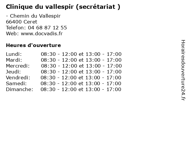 | Lundi | 08:30-12:00 et 13:00-17:00 |