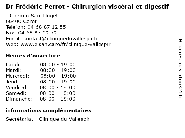 1 Dr Frédéric Traineau - Médecin généraliste (Distance: 0,00 km) - Chemin San-Pluget, 66400 Ceret consultation, docteur, dr, frederic, frédéric, généraliste, med, médecin, médecine, traineau, traitement 2 Atelier d'Architecture Archi 3B Frédéric Baro & Thérèse Bellavista (Distance: 14,43 km) 3 Espace Ludovic Masse, 66620 Brouilla 3b, archi, atelier, baro, bellavista, d'architecture, frédéric, thérèse 4 Dr Sandra Perrot - Médecin généraliste (Distance: 25,92 km) 1 Rue Dagobert, 66330 Cabestany docteur, dr, generaliste, généraliste, medical, médecin, perrot, sandra, soin 5 Dr Frédéric Perrot - Chirurgien viscéral et digestif (Distance: 26,68 km) 9 Rue Arnaud de Villeneuve, 66330 Cabestany chirurgie, chirurgien, digestif, dr, et, frédéric, general, perrot, soins, viscéral 6 Dr Diego Bono - Chirurgien Viscéral et Digestif (Distance: 28,14 km) 20 Avenue du Languedoc, 66046 Perpignan bono, chirurgien, diego, digestif, disgestive, dr, et, foie, glandes, viscerale, viscéral, viscérale |