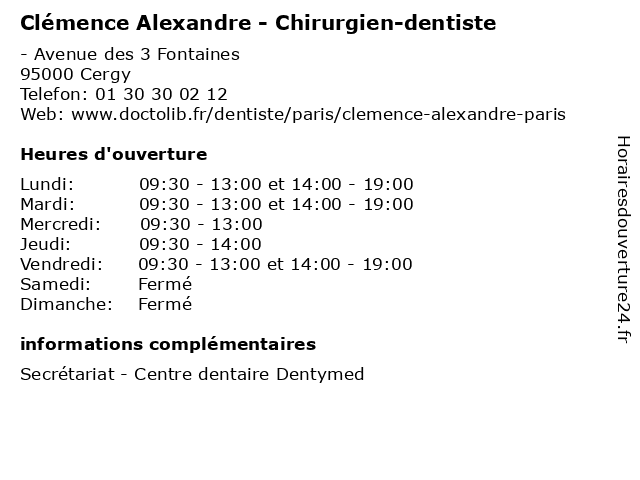 | Lundi | 09:30-13:00 et 14:00-19:00 |