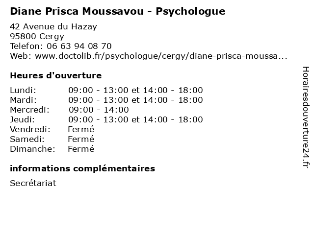 | Lundi | 09:00-13:00 et 14:00-18:00 |