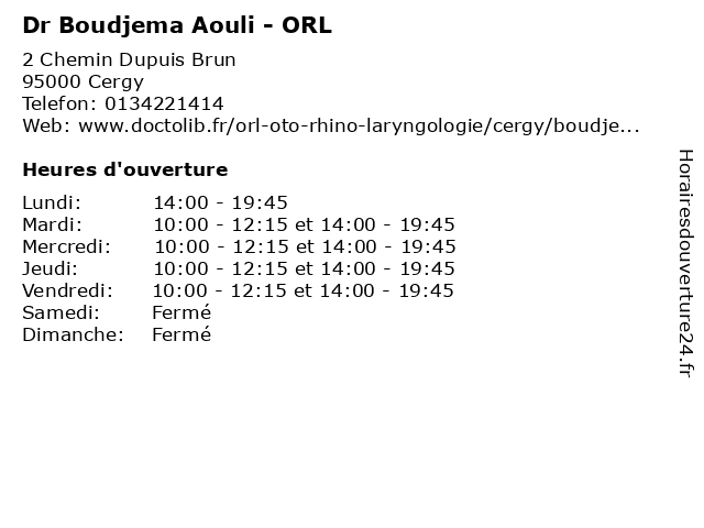 | Mercredi | 10:00-12:15 et 14:00-19:45 |