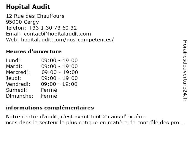 1 Hôpital René Dubos - reseau ville hopital vih et hepatite (secrétariat ) (Distance: 2,75 km) 6 Av de l'Ile de France, 95300 Pontoise consultation, docteur, dubos, et, hepatite, hopital, hôpital, rené, reseau, santé, secrétariat, vih, ville 2 Hôpital René Dubos - reseau ville hopital vih et hepatite (secrétariat ) (Distance: 2,75 km) 6 Av de l'Ile de France, 95300 Pontoise consultation, docteur, dubos, et, hepatite, hopital, hôpital, rené, reseau, santé, secrétariat, vih, ville 3 Audit Comptab Conseil Expertise Social (Distance: 10,50 km) 1 Rue Pasteur, 95150 Taverny audit, comptab, conseil, expertise, social 4 Ile De France Expertise Et Audit IFEA (Distance: 13,00 km) 44 Avenue du Parc, 95320 Saint-Leu-la-Forêt audit, de, et, expertise, france, ifea, ile 5 Audifex Audifex Audit Financier et Compt (Distance: 13,45 km) 35 Rue Aristide Briand, 78130 Les Mureaux audifex, audit, compt, et, financier 6 |