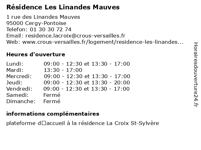 | Lundi | 09:00-12:30 et 13:30-17:00 |
