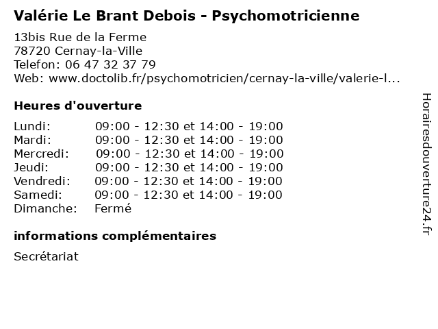 | Mercredi | 09:00-12:30 et 14:00-19:00 |