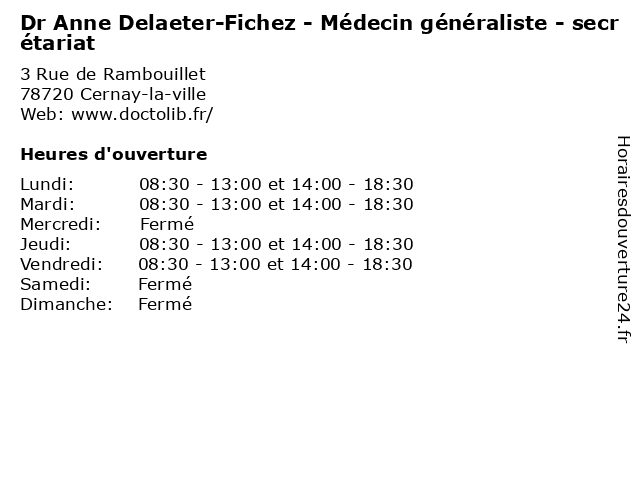 | Lundi | 08:30-13:00 et 14:00-18:30 |