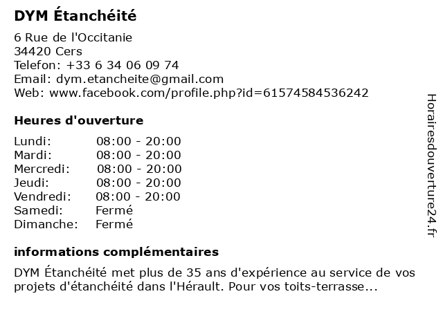 | Dimanche | Fermé |