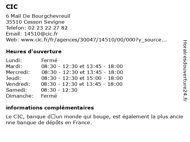 | Mercredi | 08:30-12:30 et 13:45-18:00 |