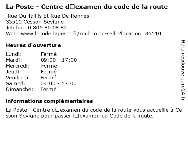 Termes de recherche pour La Poste - Centre d’examen du code de la route:poste, la, du, de, route, centre, code, d’examen, centre d'évaluation scolaire, école technique |