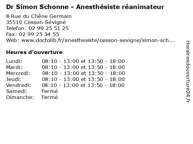 | Lundi | 08:10-13:00 et 13:50-18:00 |