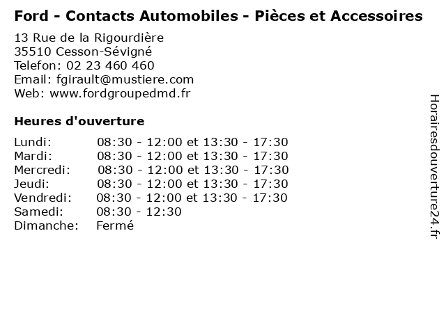 | Samedi | 08:30-12:30 |