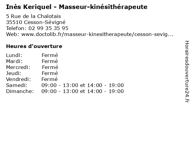 | Samedi | 09:00-13:00 et 14:00-19:00 |