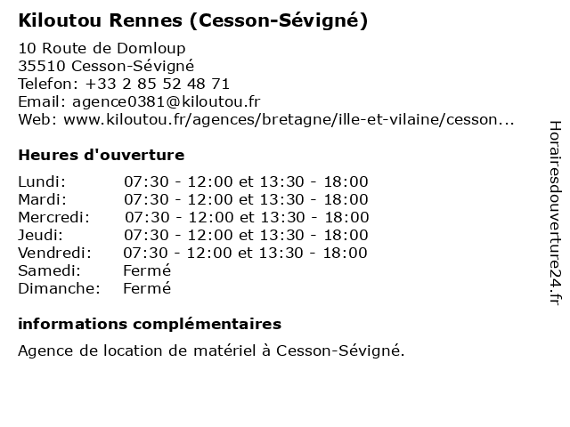 | Lundi | 07:30-12:00 et 13:30-18:00 |