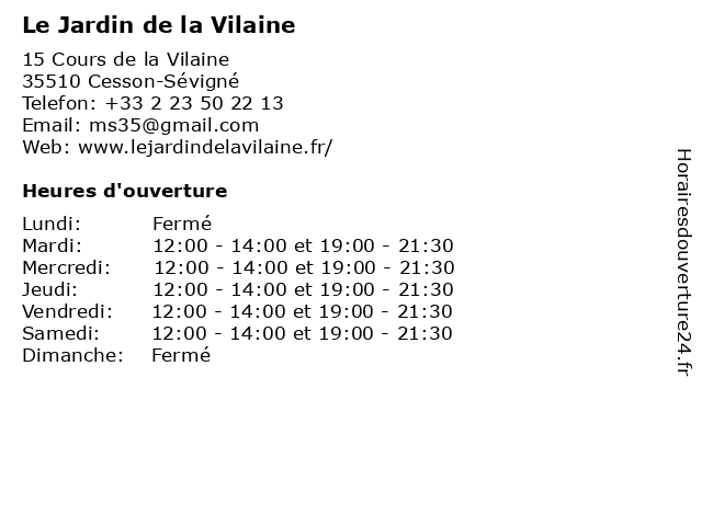Samedi | 12:00-14:00 et 19:00-21:30 |