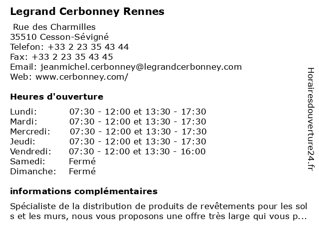 | Lundi | 07:30-12:00 et 13:30-17:30 |