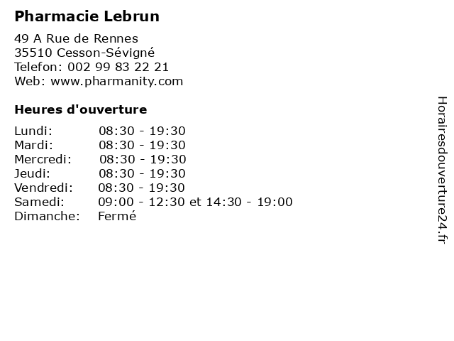 | Lundi | 08:30-19:30 |