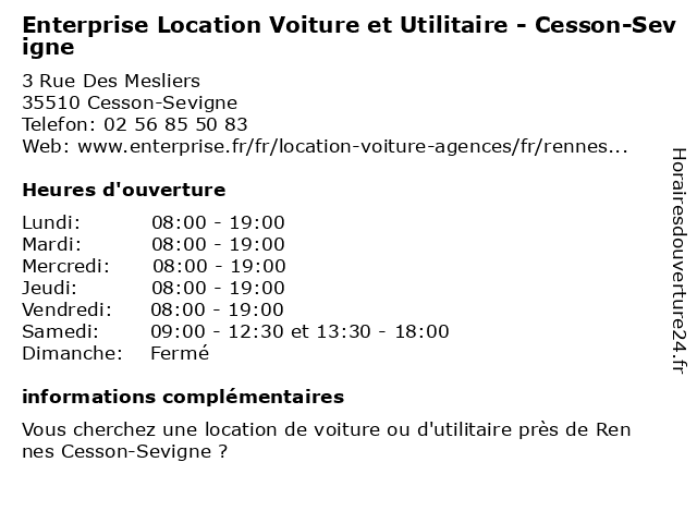Termes de recherche pour Enterprise Location Voiture et Utilitaire - Cesson-Sevigne:et, cesson, sevigne, location, voiture, enterprise, utilitaire |