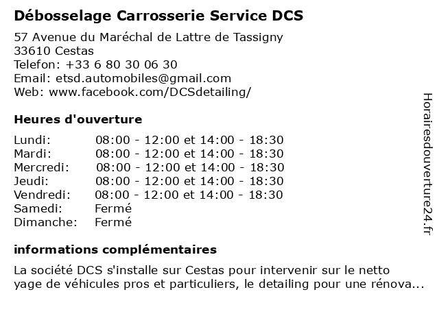 | Lundi | 08:00-12:00 et 14:00-18:30 |